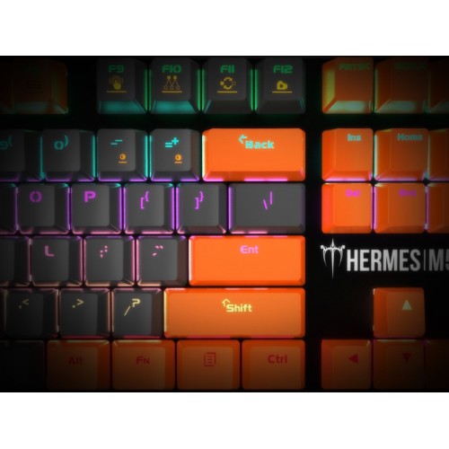 The HERMES M5A was forged with the initial idea of computer gaming by incorporating the concept of WASD & Arrow Key Exchange Functionality, Windows Key Lock Indicator, 4 designated Hotkeys for Instant Chromatic Lighting-Effect Adjustments, and 8 Multimedia Function Keys to satisfy the demands of various individuals with different personalities.