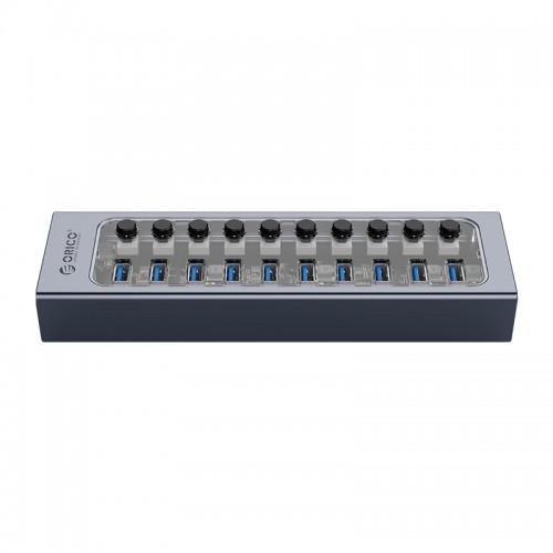 The ORICO AT2U3-10AB 10-Port USB3.0 Hub is made of Aluminum Alloy+PC. It has a Type-B 3.0 input interface that can deliver DC 12V. And for output interface, has 10x USB-A 3.0. It supports a 12V 4A (48W) power supply. Each port can work separately with noninterference and no need to plug repeatedly. USB3.0 highspeed port supports multiple devices connection while offering a fast and stable data interaction. It has a Blue LED Indicator. It is equipped with a built-in VL817 chip that offers strong and long-lasting performance for multi-tasking and continuous operation. It supports a 4TB capacity hard drive and multiple devices connection, delivering adequate power for data transmission. It supports the BC1.2 protocol of power supply, and each port offers 5V/1.5A output for prolonged use. The ORICO AT2U3-10AB comes with a 1-year warranty.