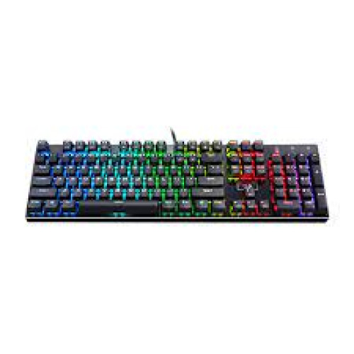 The Redragon K556 DEVARAJAS RGB features Anti-ghosting with 104 Standard Keys. All non-conflict keys and there are 12 multimedia keys. It comes with adjustable input speeds. It is loaded with features including heavy-duty metal and ABS construction, double-shot injection molded keycaps, high-end switches with mechanical ultra-last springs, crisp and bright adjustable RED LED backlighting, a gold plated USB connector, and a splash-resistant design. Extreme durability ensures that players do whatever they would like. Fully Anodized Aluminum Frame Brushed looks pretty stunning. Interchangeable arrow keys and WASD keys. The WIN keys can be disabled when gaming; laser engraved chiclet keycaps. It features 6 themes backlights, 12 backlight models, 4 LED brightness levels, and Adjustable pulsing rate LED lights. The Redragon K556 DEVARAJAS RGB keyboard supports computer systems including Windows10, Windows 8, Windows 7, Mac OS X, Windows XP, Windows VISTA, etc. It comes with a Key Cap Puller to remove the keys and clean them up. This mechanical gaming keyboard comes with a 1-year warranty.