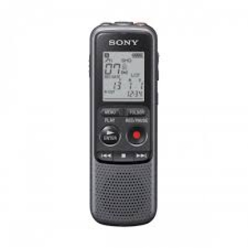 Sony ICD-PX240 Digital Voice Recorder is built in 4GB Memory and Monaural Microphone. This voice recorder has AAA x2 type battery, Dry Battery ( Alkaline, Size AAA ), MP3 playback and recording format. In this voicer recorder, Record MP3 audio and play it back through a 300mW speaker, Long battery life enables up to 32hrs recording (MP3 8kbps), 4GB of memory lets you store up to 1043hrs (MP3 8kbps). This voice recorder has Headphone Jack, Microphone In, USB Port interface.