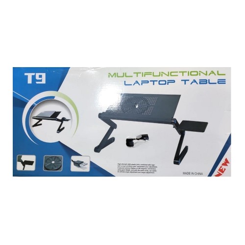 T9 Multifunctional Folding Laptop Table can hold up to 21 inch laptops and can carry weight of 15 kgs. T9 Aluminium Laptop table also comes with an attachable/detachable mouse pad. This model has a big six cooling fan and that runs with USB power from Laptop/Power bank/Direct AC Adapter. This T9 Aluminium laptop table is easy to carry and it will make your life easy. It is featured with Fold-able & portable, Material: 100% aluminum, Weight: Around 2kg, Color: Black, Dimension: 23.2 Inch long, 11.75 width. and1 large USB cooling fan. This laptop table has an outstanding feature of adjusting it in 3 different ways according to your body size and the purpose for which you are using it. This T9 Multifunctional Folding Laptop Table has no warranty.